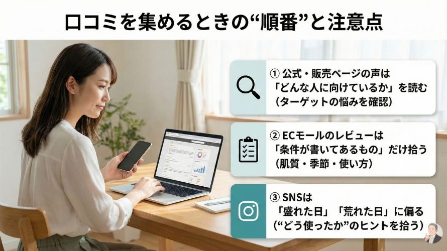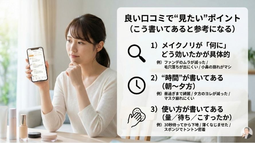 口コミは「肌質×季節×下地×使い方」で割れる。だから“見方”を固定しよう