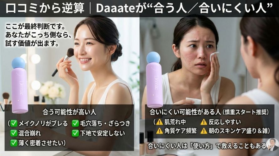 プレメイクスムースローション【Daaate(デイト)】の口コミ・評判は本当?良い点・悪い点と“合う人”の見分け方