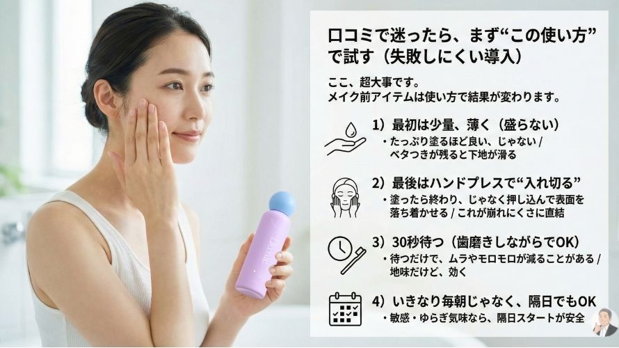 - 口コミは「肌質×季節×下地×使い方」で読む