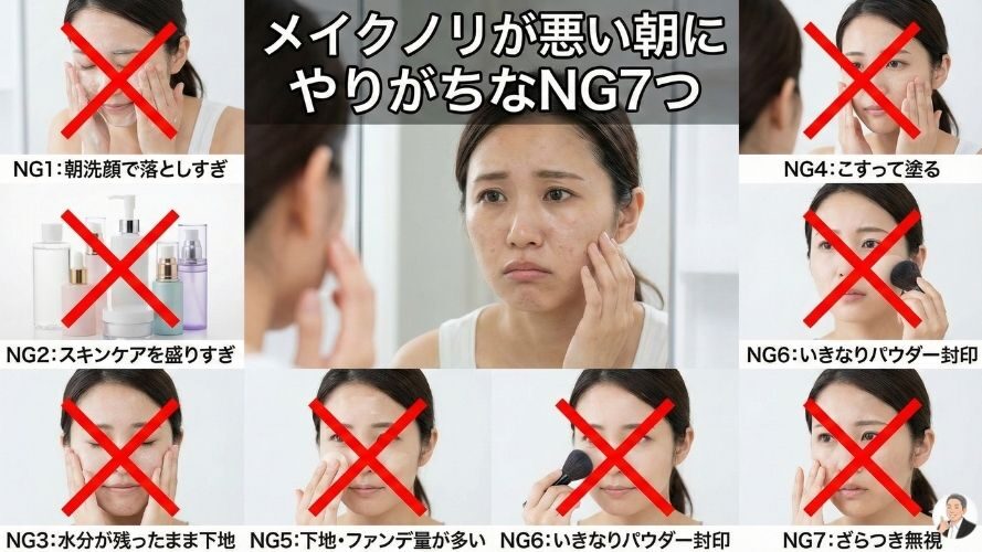 メイクノリが悪い朝にやりがちなNG7つ(これ、ほぼ全員どれかやってます)