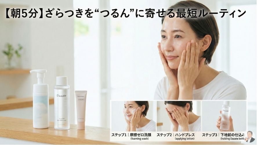 【朝5分】ざらつきを“つるん”に寄せる最短ルーティン